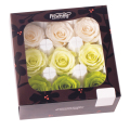 一箱(9輪) ●花経:約4~4.5cm ●花丈:約3.5~5cm 〇ライトグリーン 〇フレッシュグリーン 〇アンティックホワイト